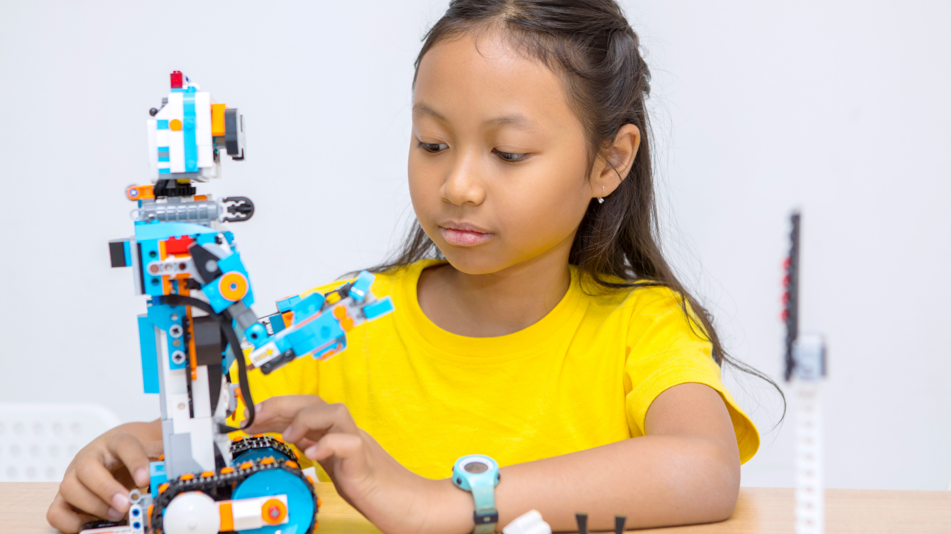 Our program focuses on principles like gears, pulleys, axles, motors, and modular design, teaching children how things work and how to solve design challenges in age-appropriate teams.